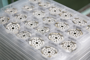 また、焼結製品の種類においては、仕様違いの異形状部品も含めると約300機種にのぼり、フレキシブルな小ロット生産で月産290万個の生産を24時間体制で行っています。